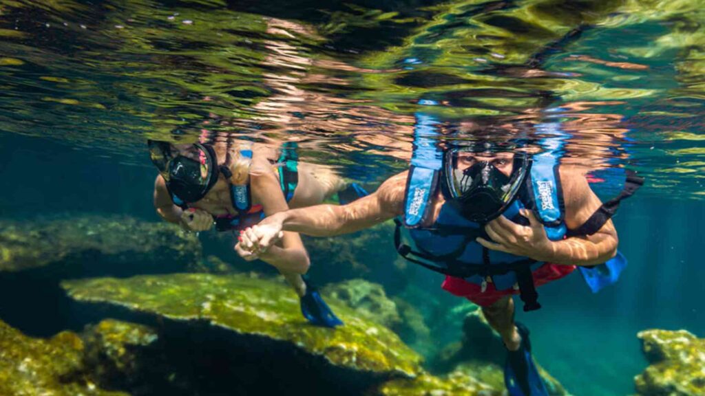 Xel-Há is a natural aquatic park in Riviera Maya where nature rules: coves, cenotes, mangroves, rivers, tranquil walks combined with activities for all tastes. The setting is spectacular: natural inlet/cove, gentle rivers, cenotes, lush tropical vegetation, jungle trails, visible marine life during snorkeling.